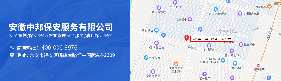 中邦服務(wù)簡介 安徽中邦保安服務(wù)有限公司總公司成立于2019年。公司 成立以來,始終以“文明值勤、優(yōu)良服務(wù)、客戶至上、安全為先” 為宗旨,以保一方平安為已任,面向社會各界等提供有償保安護(hù) 衛(wèi)、技術(shù)防范、保安培訓(xùn),是一家專業(yè)化保安服務(wù)公司。目前, 公司下為200多家客戶單位提供周到安全的保安服務(wù),遍布全省 及周邊地區(qū),現(xiàn)有各類專業(yè)人員和保安員2000余名。 中邦服務(wù)宗旨 安徽中邦保安服務(wù)有限公司是為適...